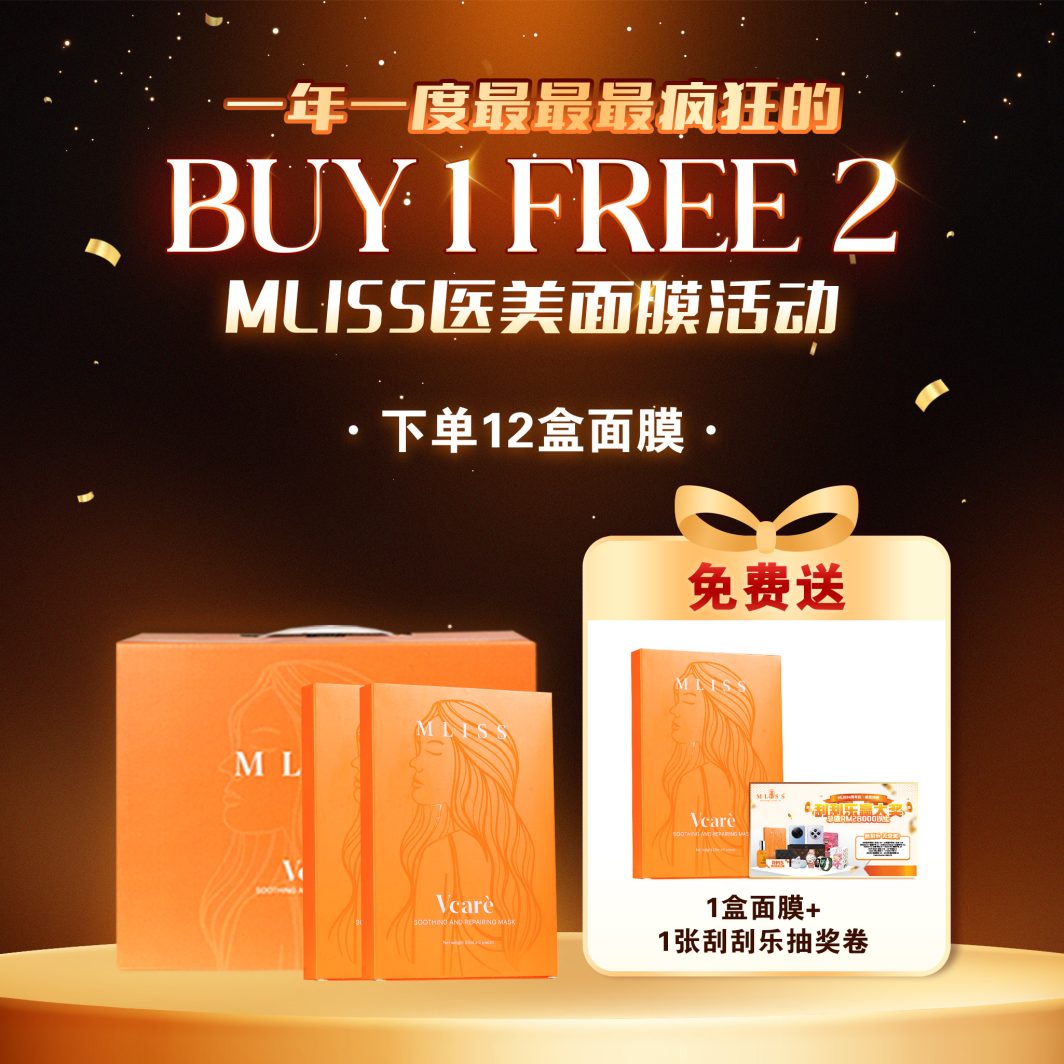09 days 04 hours 40 minutes 52 seconds 【买12盒送1盒面膜+1抽奖卷】 MLISS Vcare Soothing And Repairing Mask ( 12盒 ) RM357.60 加入购物车